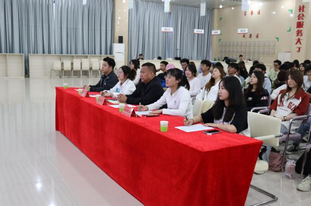党委书记靳国斌,团委老师郝凤英,招生就业办公室老师王荣,学生会主席团成员张易达、李嘉诚担任此次活动评委。